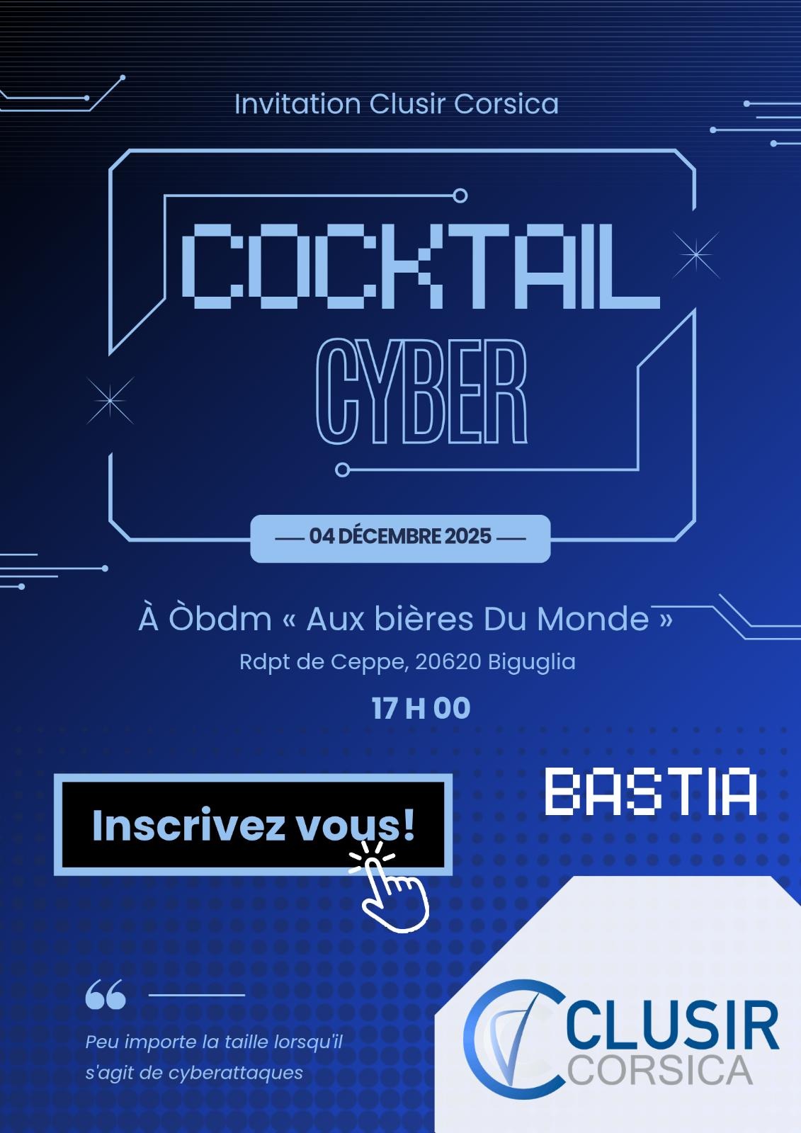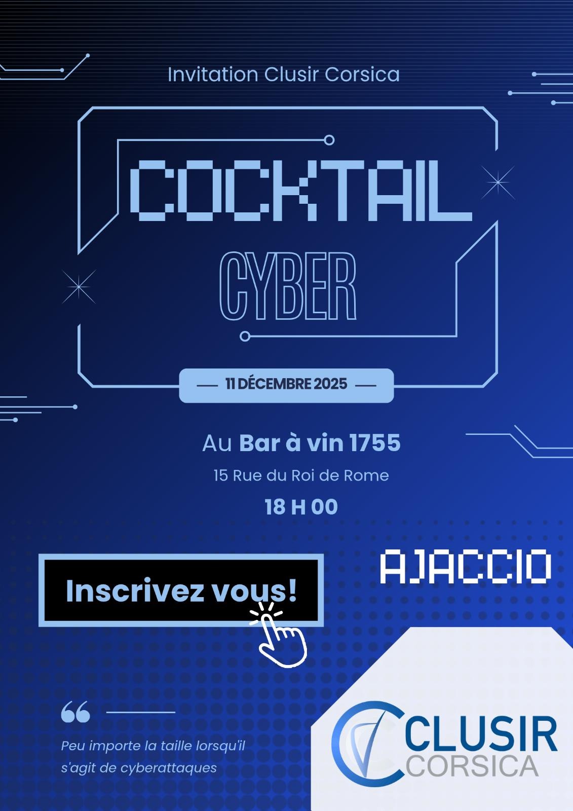 CLUSIR Corsica organise tout au long de l’année des événements, des conférences, des ateliers et des formations pour sensibiliser et éduquer les membres sur les enjeux actuels de la sécurité informatique.